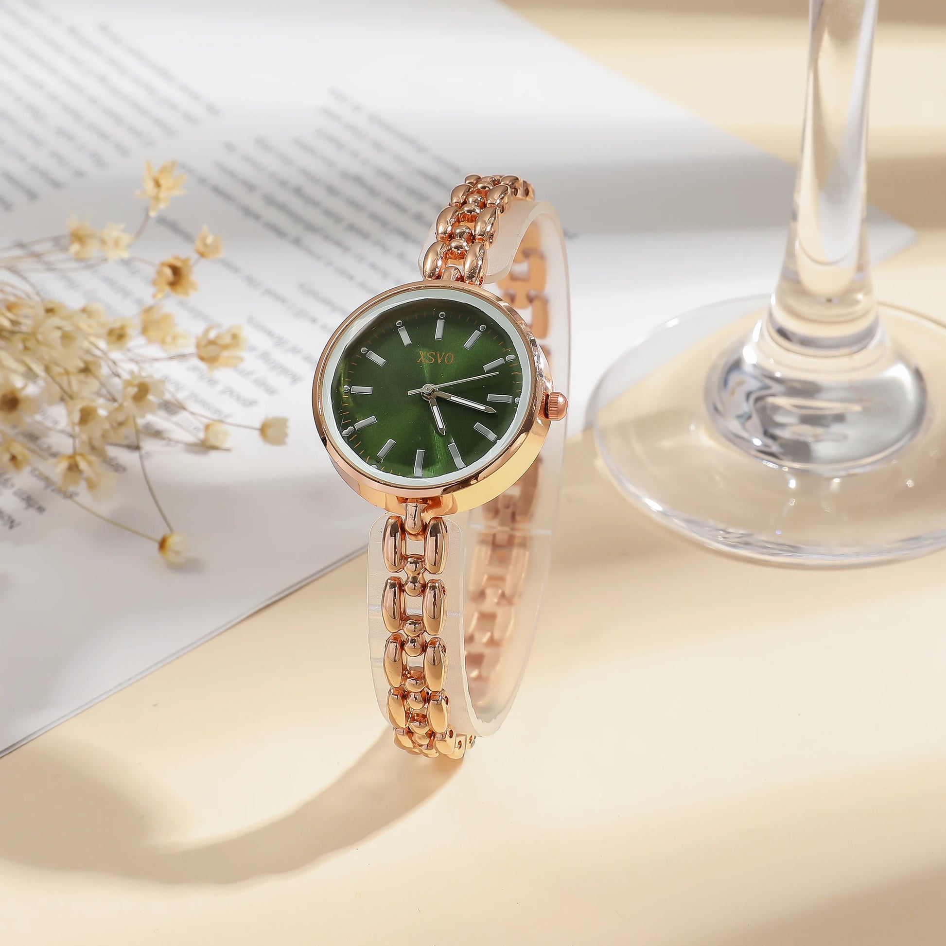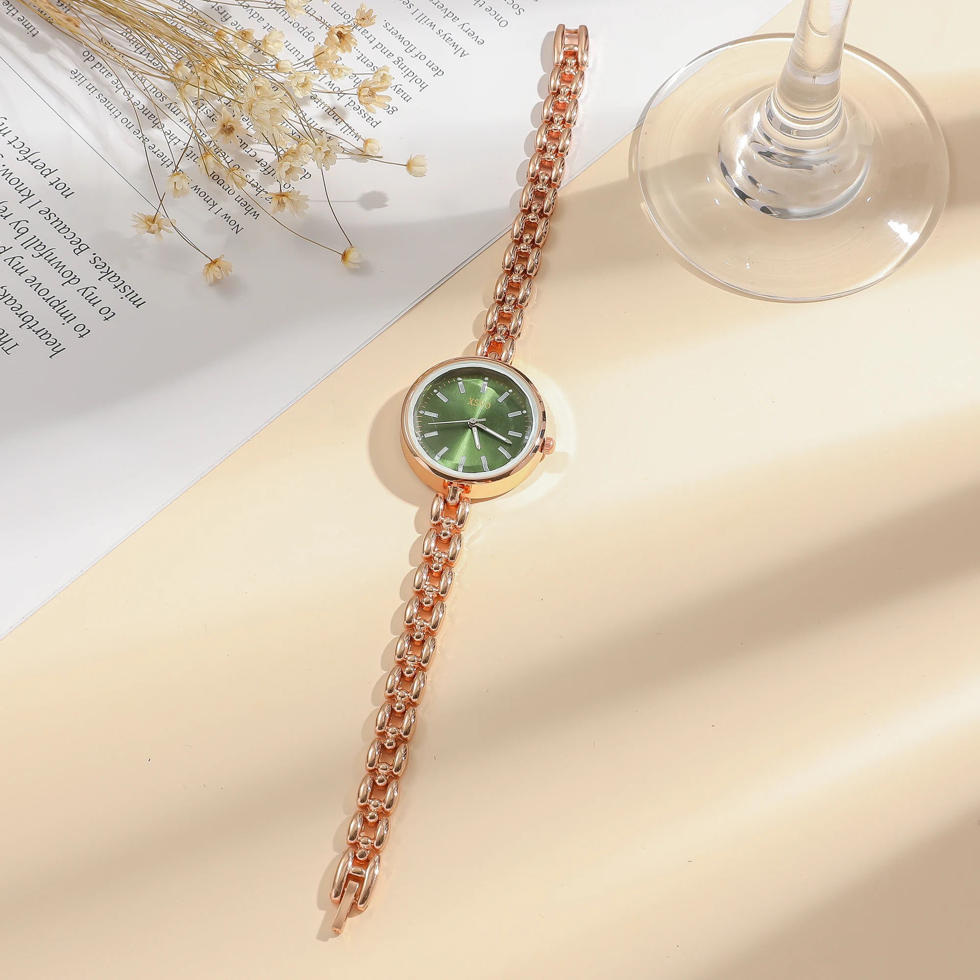 Elegant Rose Gold Women's Watch, Green Sunburst Dial, Bamboo Link Bracelet, Fashion Quartz Wristwatch for Ladies, Daily Wear Gif